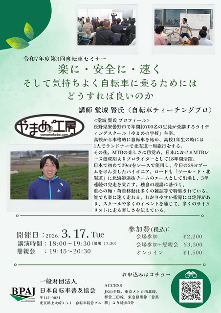 令和7年度第3回自転車セミナー/講師:堂城賢氏 3月17日(火)18:00~19:30